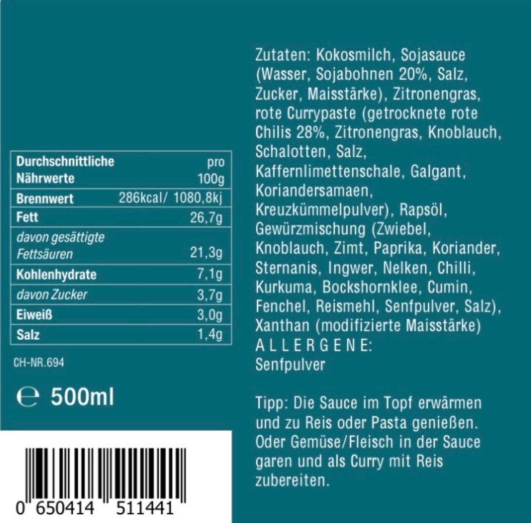Schon beim Öffnen verzaubert ein betörender Duft von Zitronengras & exotischen Aromen die Sinne! Unsere Curry Sauce aus reiner Kokosmilch und gelbem Curry, pikant und mit Sojasauce abgeschmeckt ist nicht nur direkt als Sauce einsetzbar, sondern auch als perfekte Basis für Gemüse- oder Fleischcurry. Nicht nur – wie anzunehmen – zu Reis perfekt, sondern auch zu Nudeln ein absolutes Highlight!
