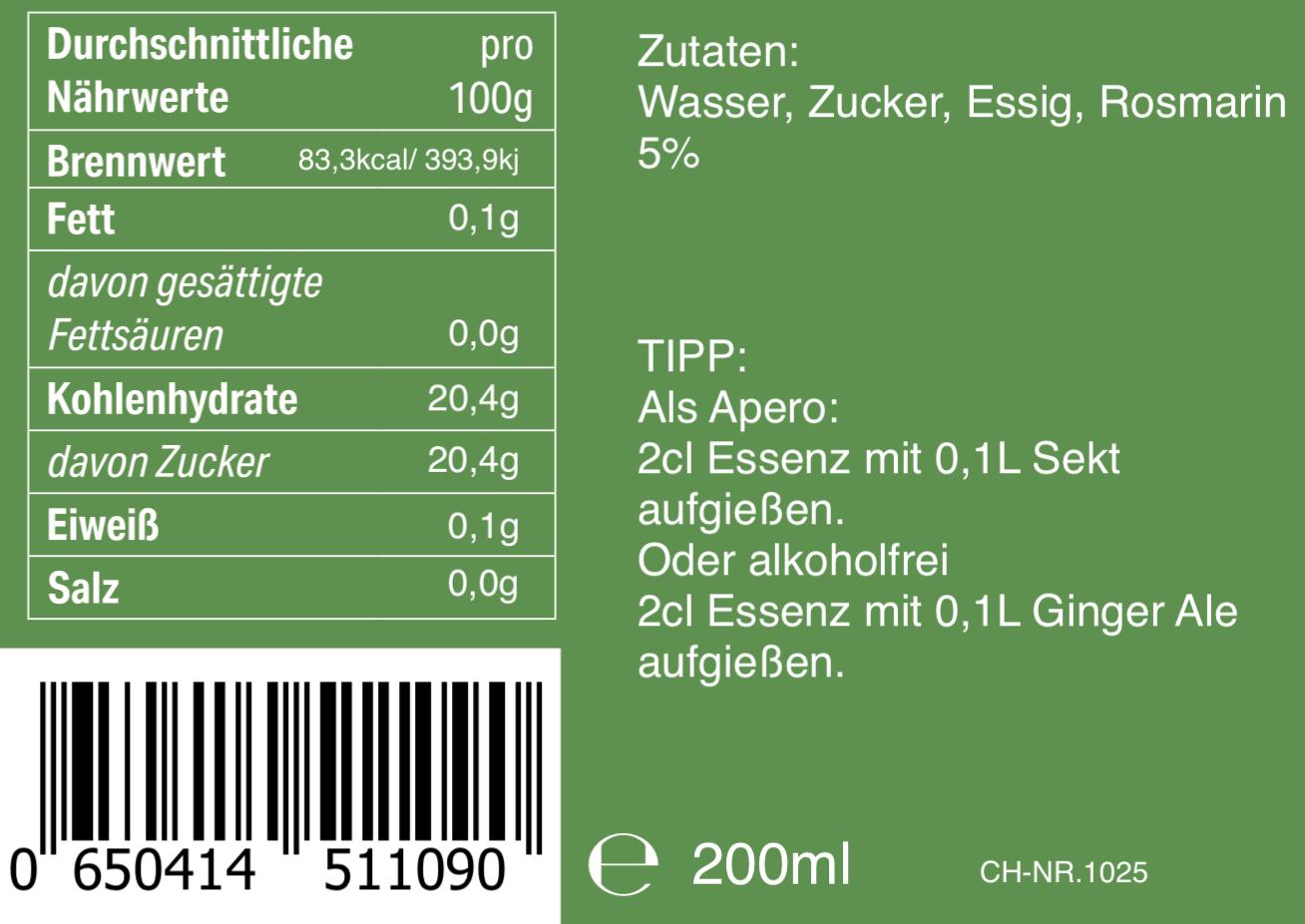 Essenz für die Götter: Rosmarin ist nicht nur unglaublich gesund, denn das aromatische Kraut wirkt durchblutungsfördernd, löst Krämpfe, schützt das Herz, fördert die Verdauung und bringt bei Erschöpfung oder Ermüdung sogar fix den Kreislauf in Schwung – nein. Er bringt auch als Essenz richtig Schwung in deine Drinks! Als Aperitiv 2cl mit 0,1l Sekt oder Ginger Ale aufgießen und überrascht sein, wie belebend und erfrischend Kräuter schmecken können!